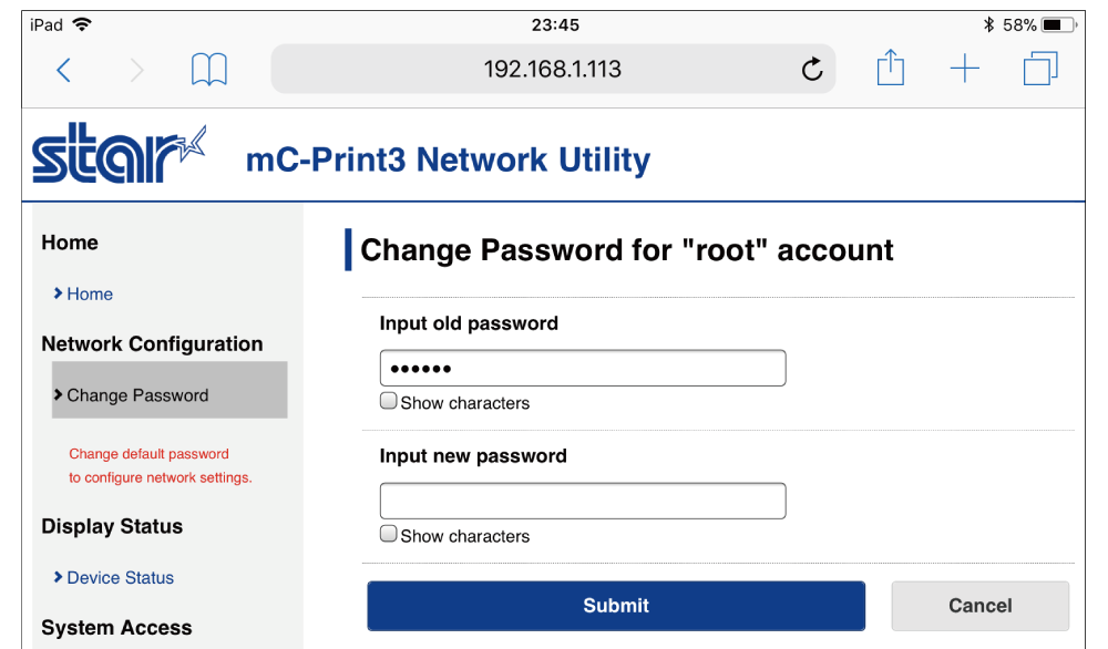 - 當使用預設密碼登入時,會出現密碼變更畫面。 變更密碼後,請繼續執行以下步驟。