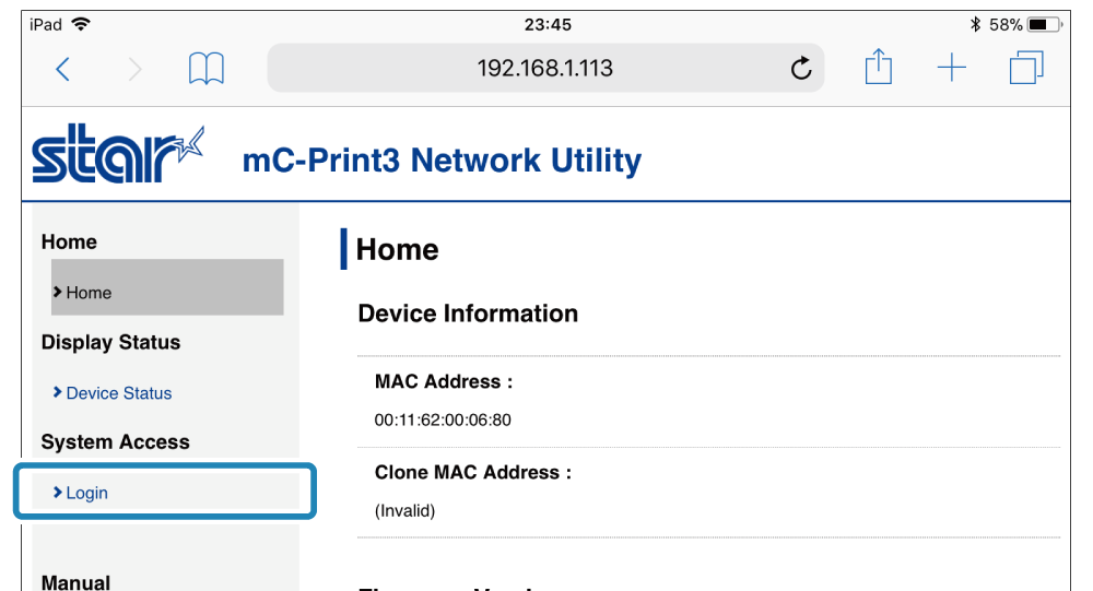 按鍵,開啟 [Login]。 - 登入名稱: root / 密碼: 登入密碼 [更改後的密碼 或 預設密碼 ( public )]。