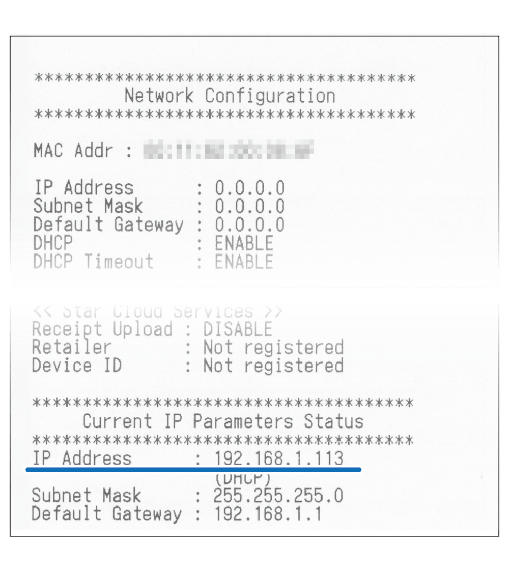 - 請執行印表機的 自我測試列印 功能,檢查列印資訊 **Current IP Parameters Status** 中 "IP Address" 所顯示的 IP 地址。