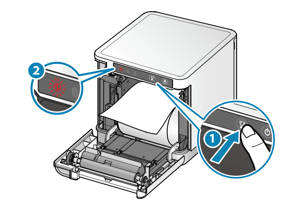 • 按住 FEED 鍵不放 ,一直到面板的電源 LED 燈閃爍紅色時 ,放開 FEED 按鍵,進入 "切換 USB-C 功能" 的模式。