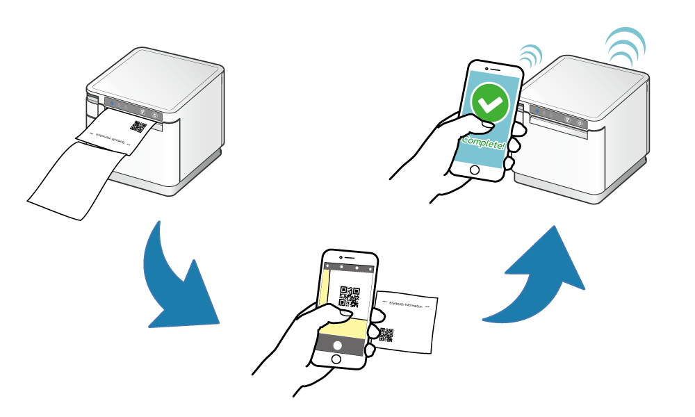 - 透過 Star Quick Setup Utility(iOS、Android)應用程式,掃描自我測試頁印出的 QR 碼,輕鬆執行藍芽配對,在選取連接至此應用程式的印表機後,可便捷的進行設定印表機的作業。