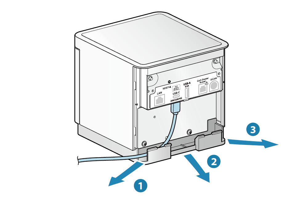 • 訊號線出入口有3個位置 ( 右, 左, 後 ),可以依裝置的放置方位配置訊號線。