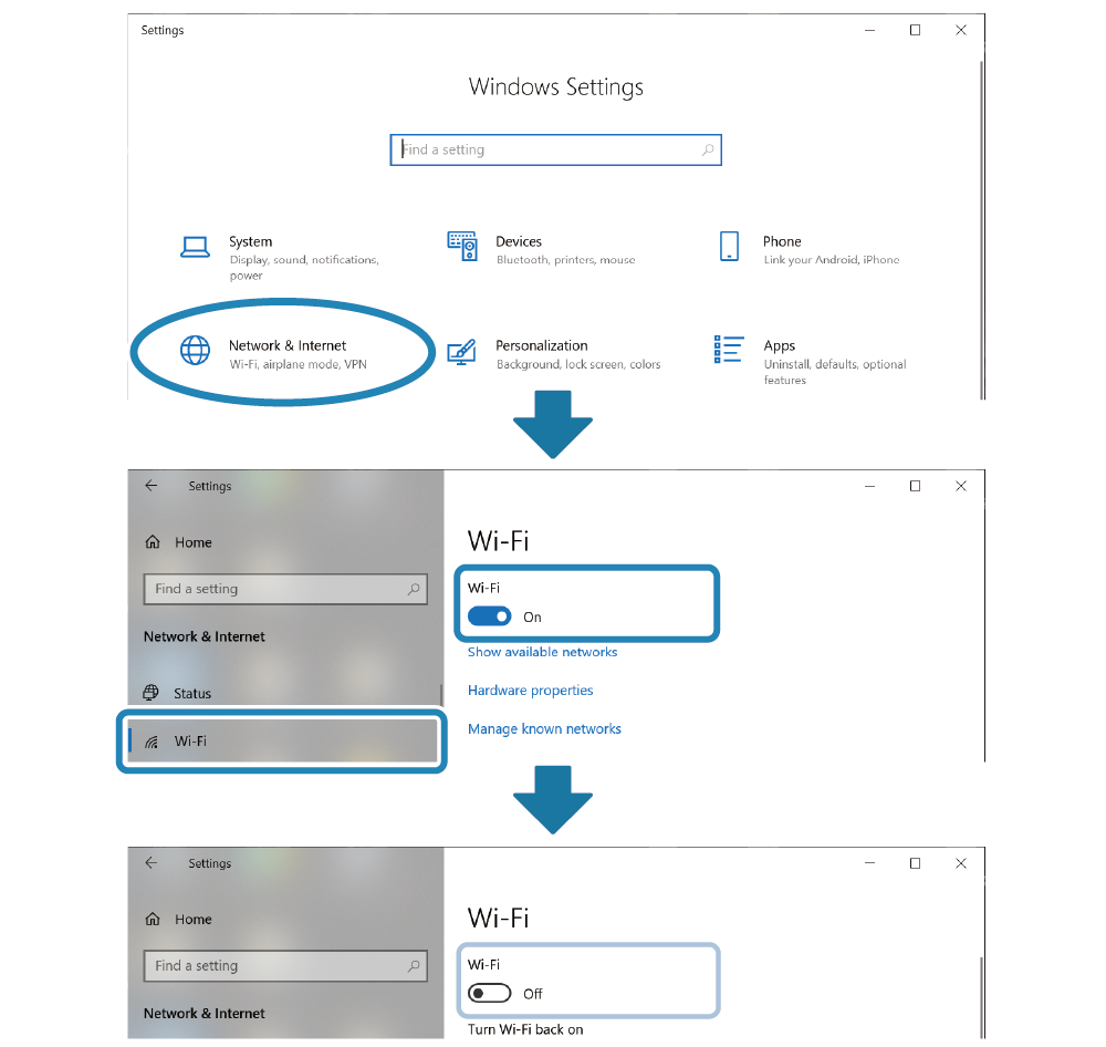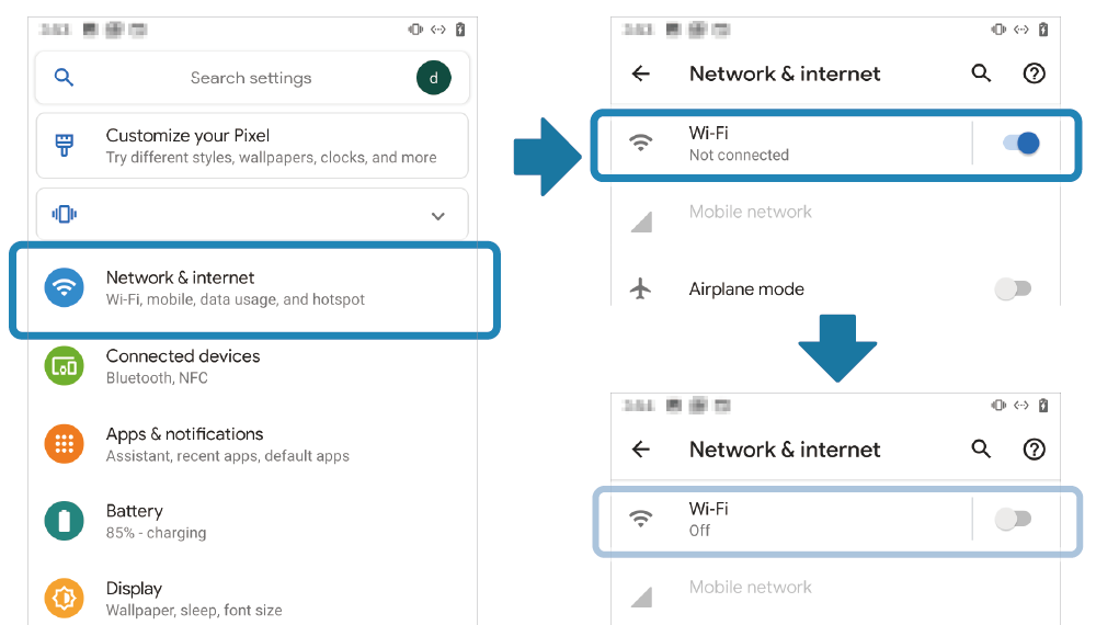 - 開啟 [Settings] - [Network & Internet],設定 Wi-Fi 為 “OFF”。