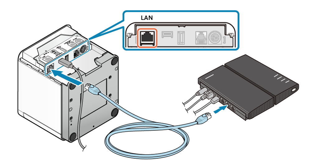 - 將網路線連接到印表機的網路連接埠中,並將另一端的插頭連接到集線器,路由器或其他網絡設備。