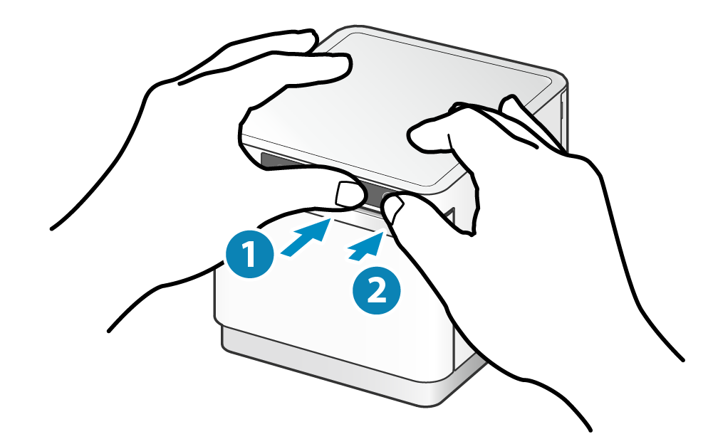 ,開啟電源。 - 當自我測試列印開始時,放開 FEED 按鍵。