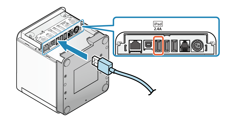 - 連接 Lightning 訊號線到印表機 USB-A 埠 ( 2.4 A )。