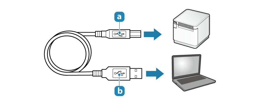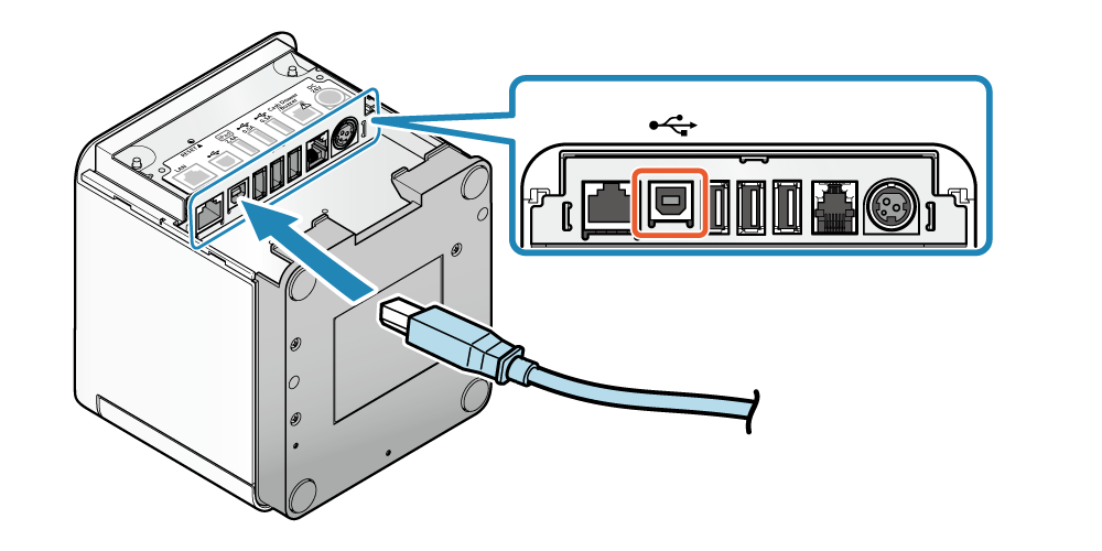 - 連接 USB 訊號線到印表機 USB-B 埠。