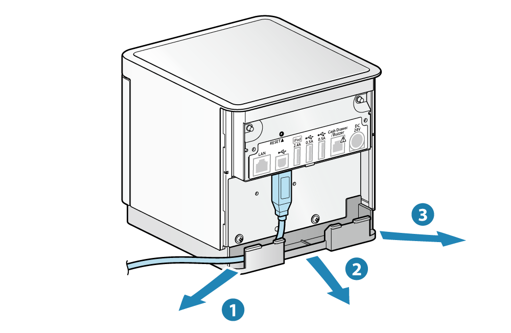 - 訊號線出入口有3個位置 ( 右, 左, 後 ),可以依裝置的放置方位配置訊號線。
