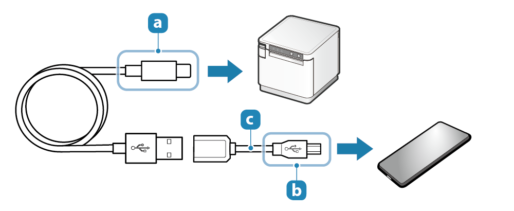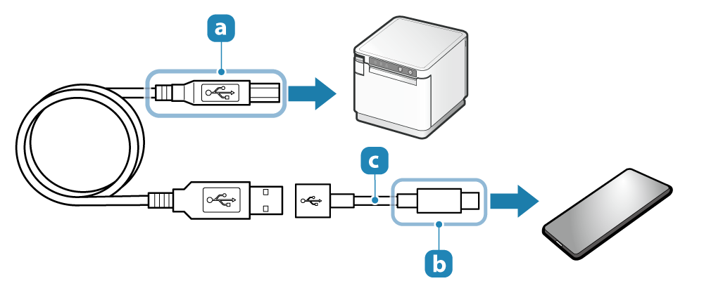 - 使用 PC 時,請準備 USB 訊號線(Type-A 轉 Type-B)連接印表機。使用平板電腦時,請準備與平板電腦連接器相匹配的 USB 訊號線。