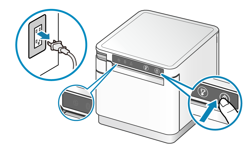 - 關閉印表機電源,然後將電源插頭從電源插座中拔出。