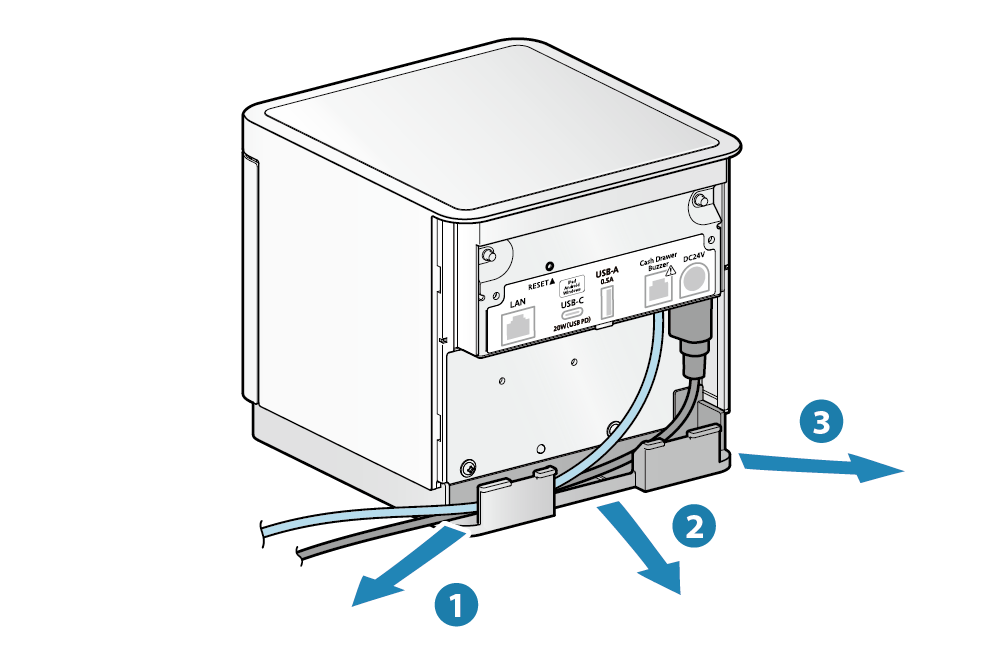 - 訊號線出入口有3個位置 ( 右, 左, 後 ),可以依裝置的放置方位配置訊號線。