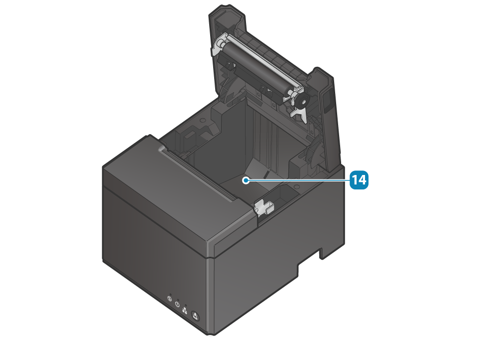 安裝紙捲時,將手指鉤入此凹槽可打開印表機上蓋。