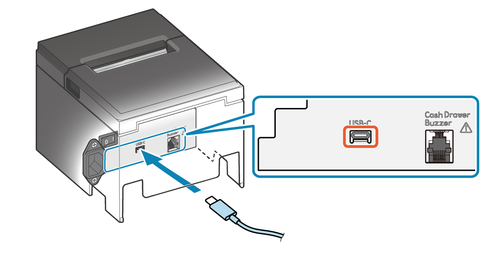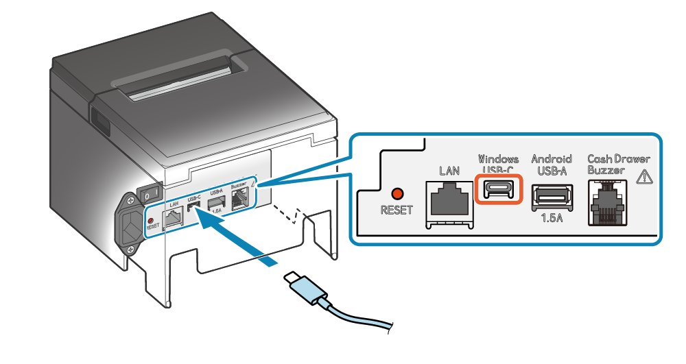 - 將 USB 訊號線連接到印表機的 USB-C 連接埠 (Windows USB-C)。