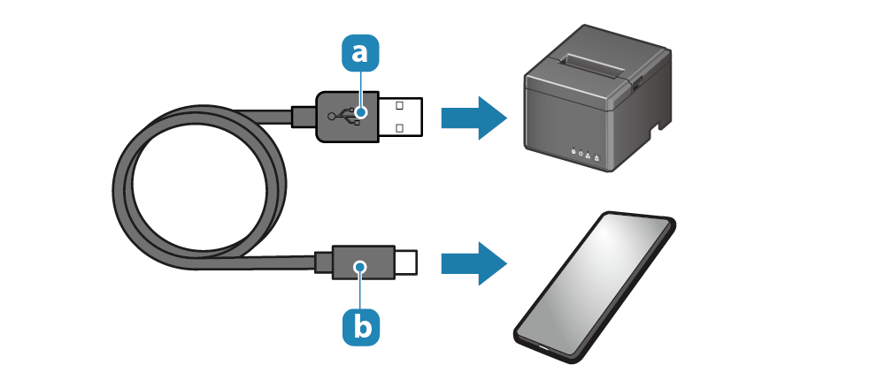 - 將 USB 訊號線連接到印表機的 USB-A 連接埠 (Android USB-A)。