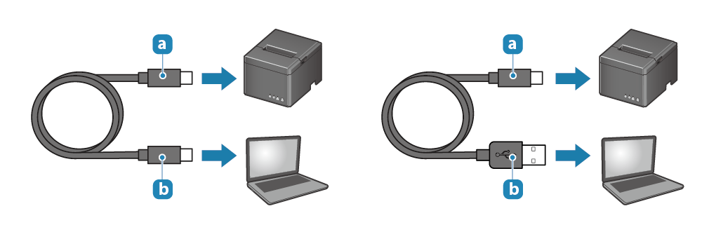 從 Windows、Mac 或 Linux 的 PC/平板電腦 進行通訊(列印)時,請參考以下步驟操作,並連接訊號線到印表機的 USB-C 連接埠 (Windows USB-C)。