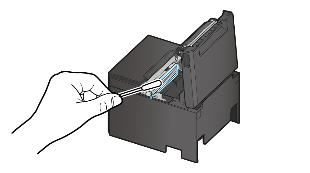 - 用棉花棒蘸酒精(乙醇、或異丙醇),將印字頭加熱區擦拭乾淨。