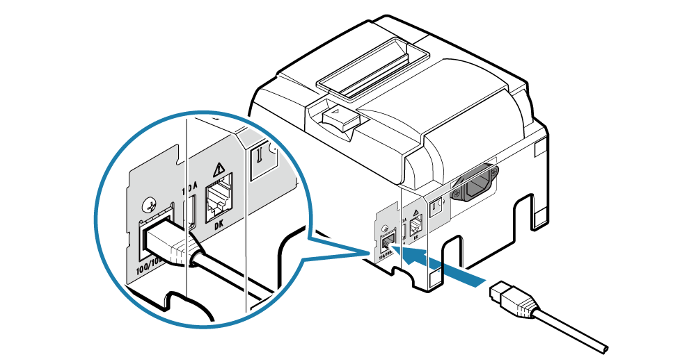 - 將網路訊號線另一端連接到印表機。