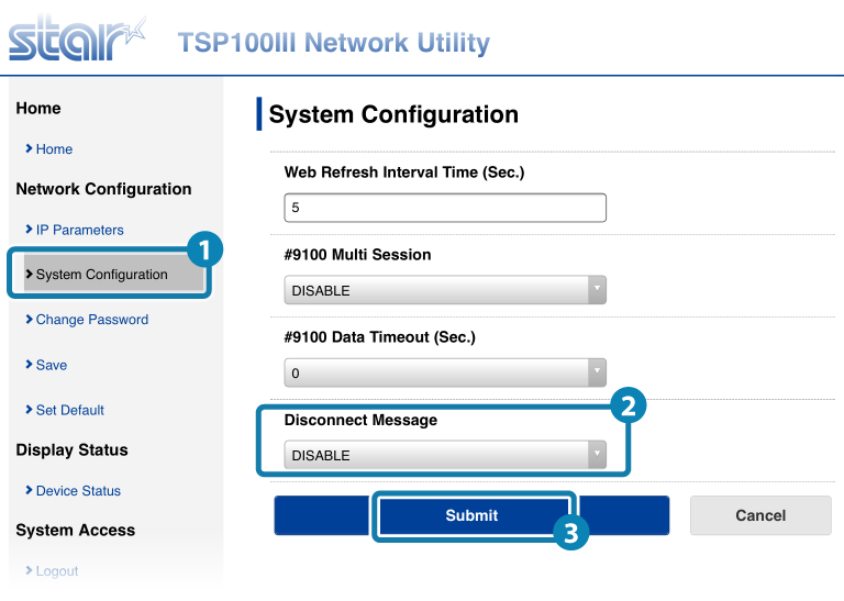 DISABLE : 當網路故障發生時,不列印斷線訊息。