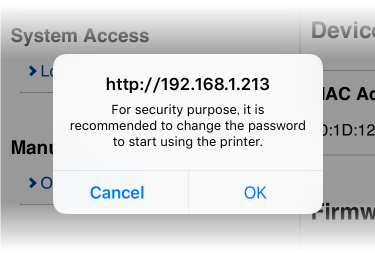如果選擇 [OK] 時,會出現密碼變更的畫面,變更密碼後,請繼續執行以下步驟。 - 從選單或螢幕左上角選單