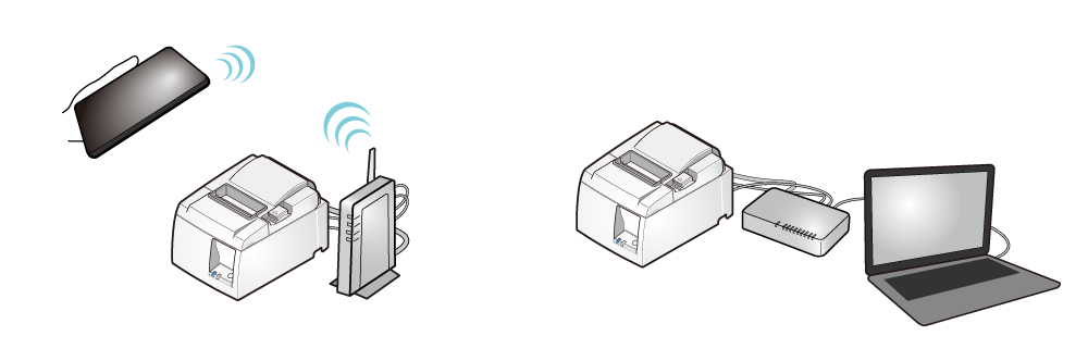 使用 iOS 裝置 ( iPad / iPhone ) 設定時,請將 TSP100IIILAN 印表機和 iOS 裝置連接到相同網路(相同網路區段)。