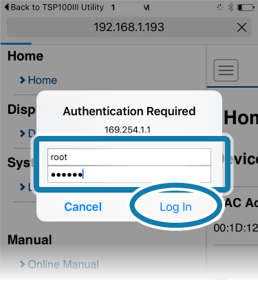 登入名稱: root / 密碼: 登入密碼 [ 更改後的密碼 或 預設密碼 (public) ]。 -