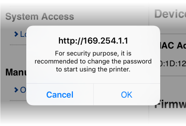 - 當使用預設密碼登入時,會出現下圖的畫面。按 [OK] 進行密碼變更 或 按 [Cancel] 取消變更密碼。