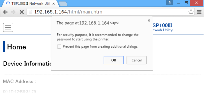 當使用預設密碼登入時,會出現下圖的畫面。按 [OK] 進行密碼變更 或 按 [Cancel] 取消變更密碼。