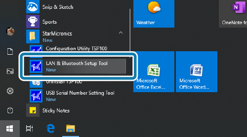 2. 從 LAN和藍芽設定工具( LAN & Bluetooth Setting Tool) 中選擇印表機,開啟設定畫面