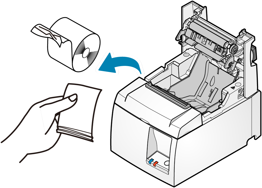 - 紙捲安裝時,請將紙張邊緣以直線拉出。