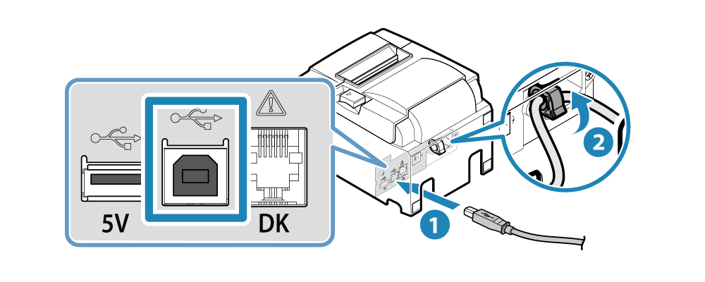 2. 連接 USB 訊號線到印表機