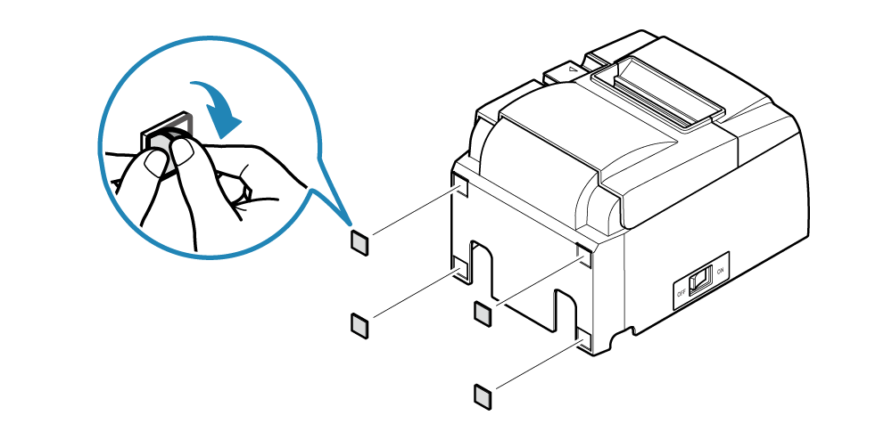 撕下電源開關保護蓋背面貼紙模,黏貼到印表機電源開關位置。