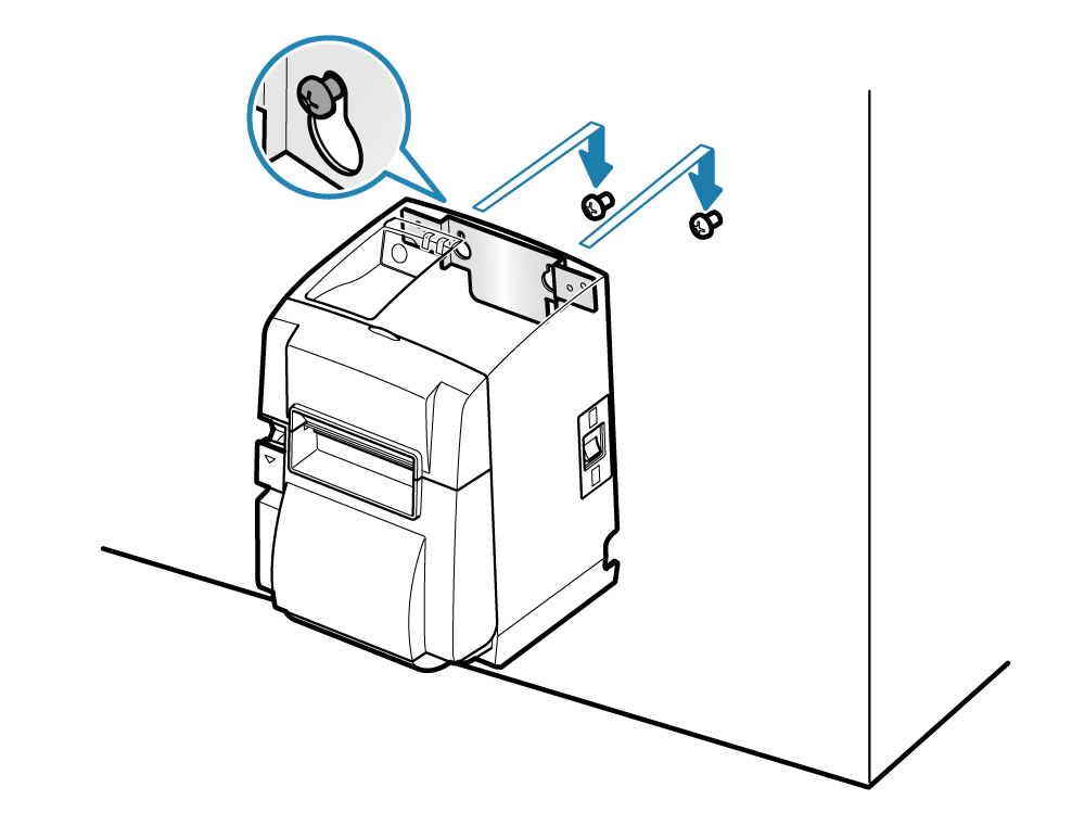 - 將掛牆固定板和印表機的螺絲孔對齊,以隨機所附的兩顆螺絲 (M3 ) 固定。