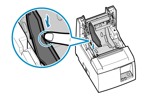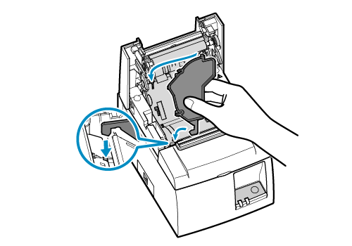 - 將紙捲擋板壓下直到聽見卡入的響聲。