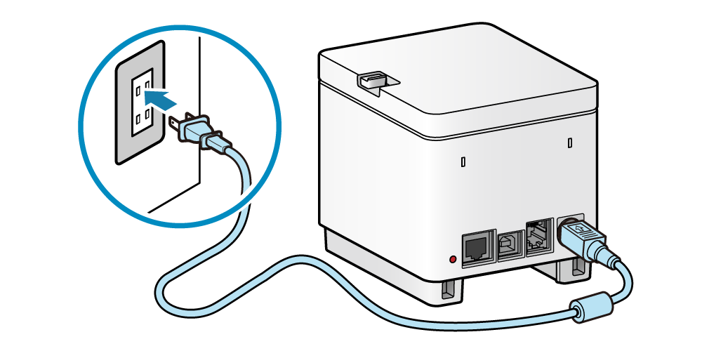 - 請將 AC 電源供應器的插頭,以垂直的方向,正確插入印表機的電源連接座。