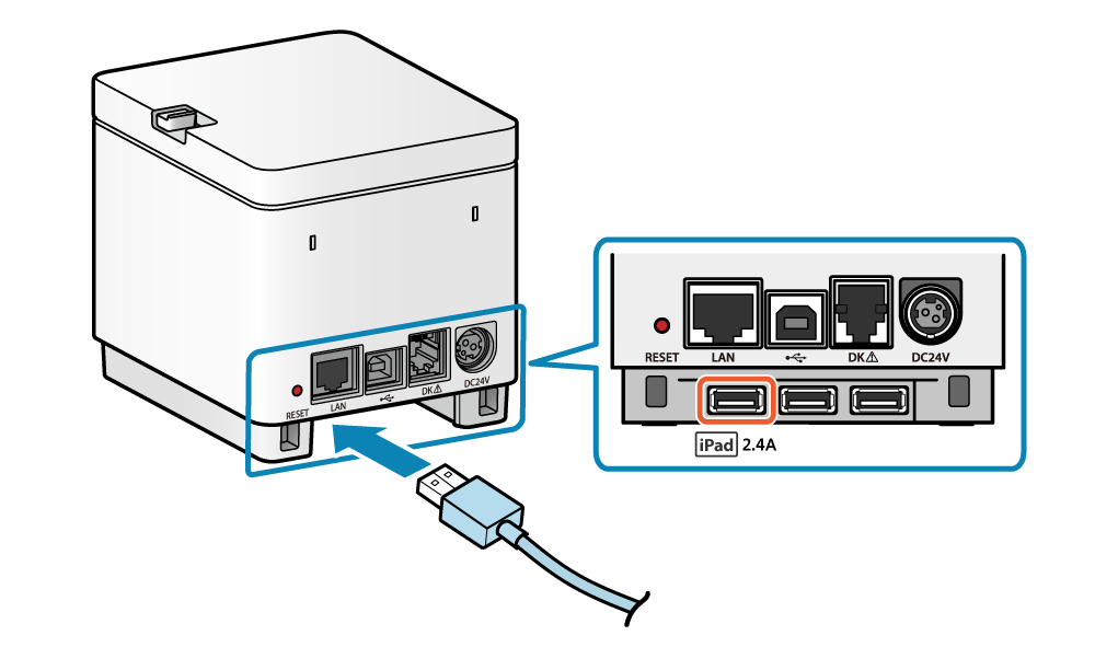 - 連接 Lightning 訊號線到印表機 USB-A 埠 (2.4A)。