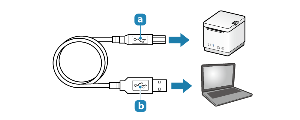 - 連接 USB 訊號線到印表機 USB-B埠。