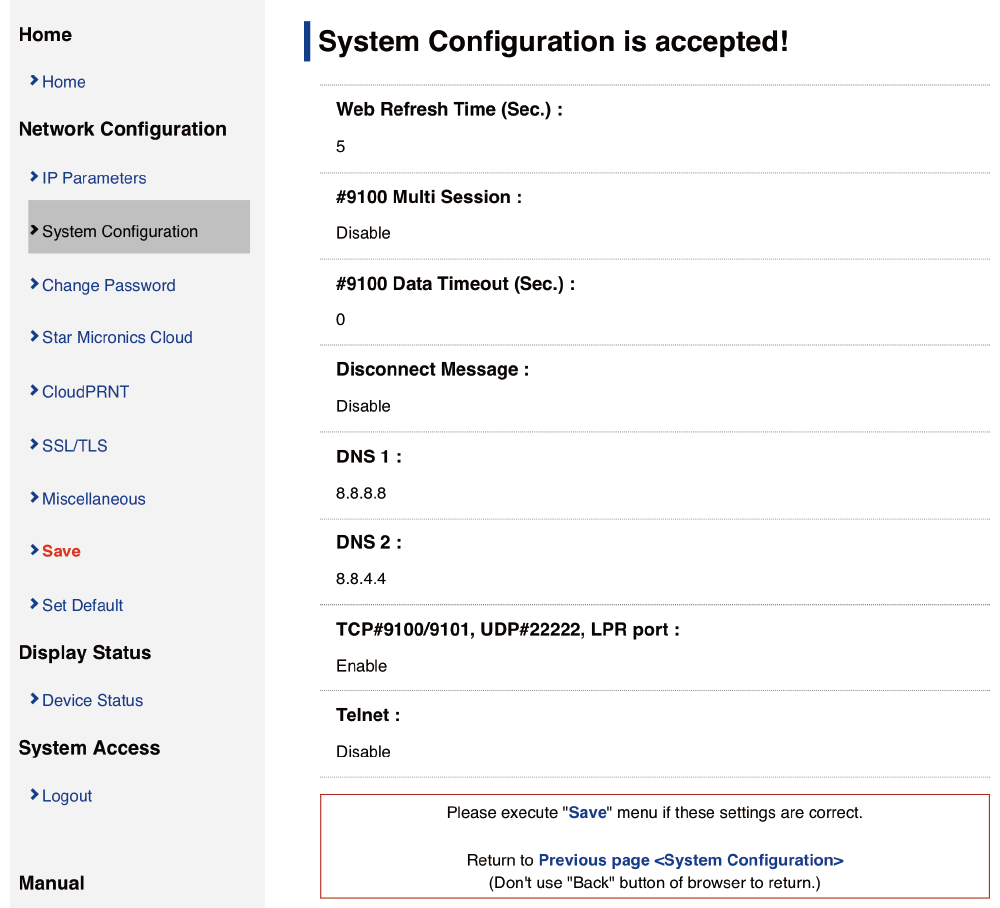 ,點選 SaveConfiguration PrintingRestart device