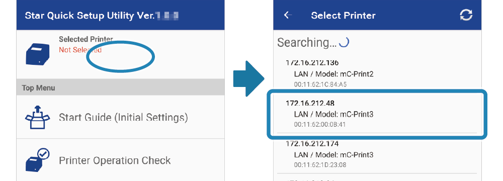 • 執行 Star Quick Setup Utility 選擇連線的印表機。