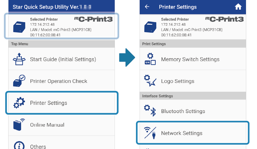 開啟 [Printer Settings] - [Network Settings]。