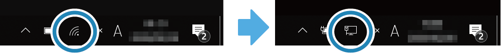 對於許多型號,當主機裝置的通訊從無線 LAN 變更為有線 LAN 時,Wi-Fi 圖示會變更為乙太網路圖示。