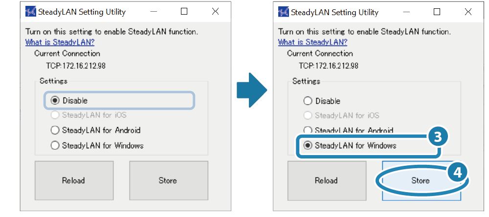 • 從 開始選單中,開啟 [Star Windows Software] - [SteadyLAN Setting Utility]。