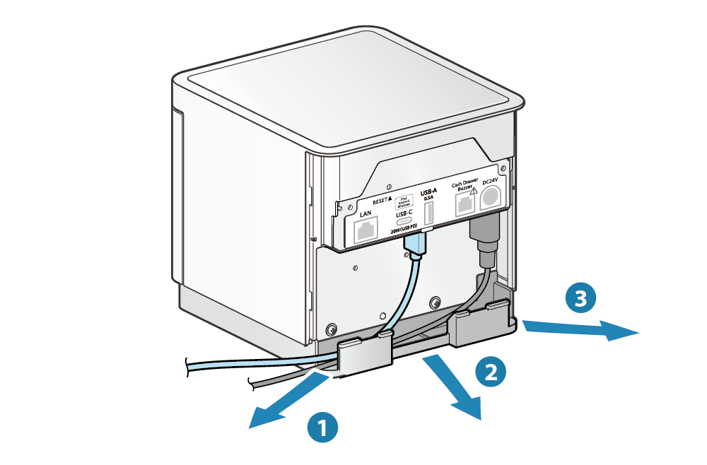- 訊號線出入口有3個位置 ( 右, 左, 後 ),可以依裝置的放置方位配置訊號線。