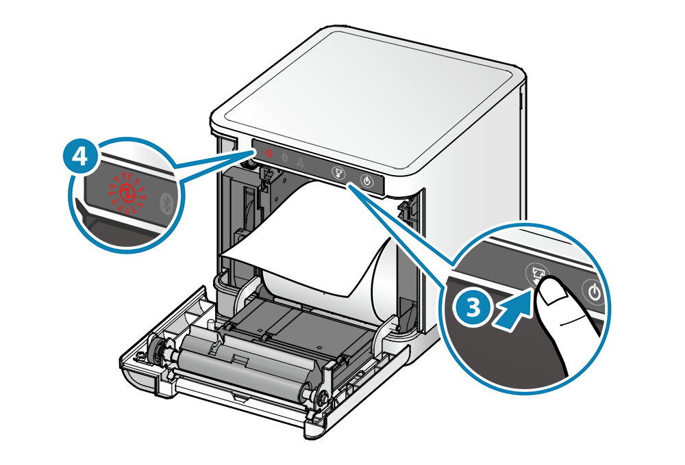 • 按住 FEED 鍵不放 ,一直到面板的電源 LED 燈閃爍紅色時 ,放開 FEED 按鍵,進入 "切換 USB-C 功能" 的模式。