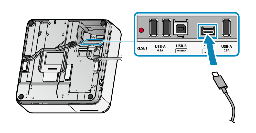 - 將 USB 訊號線,連接到 mPOP 底部的 USB-C 連接埠 ( 15 W )。