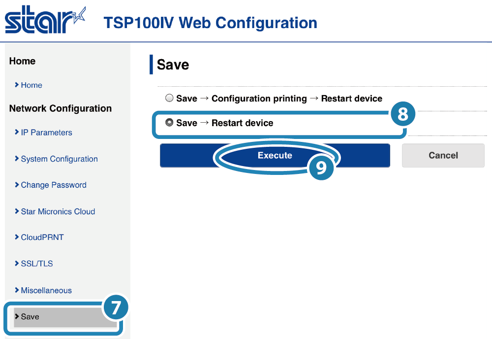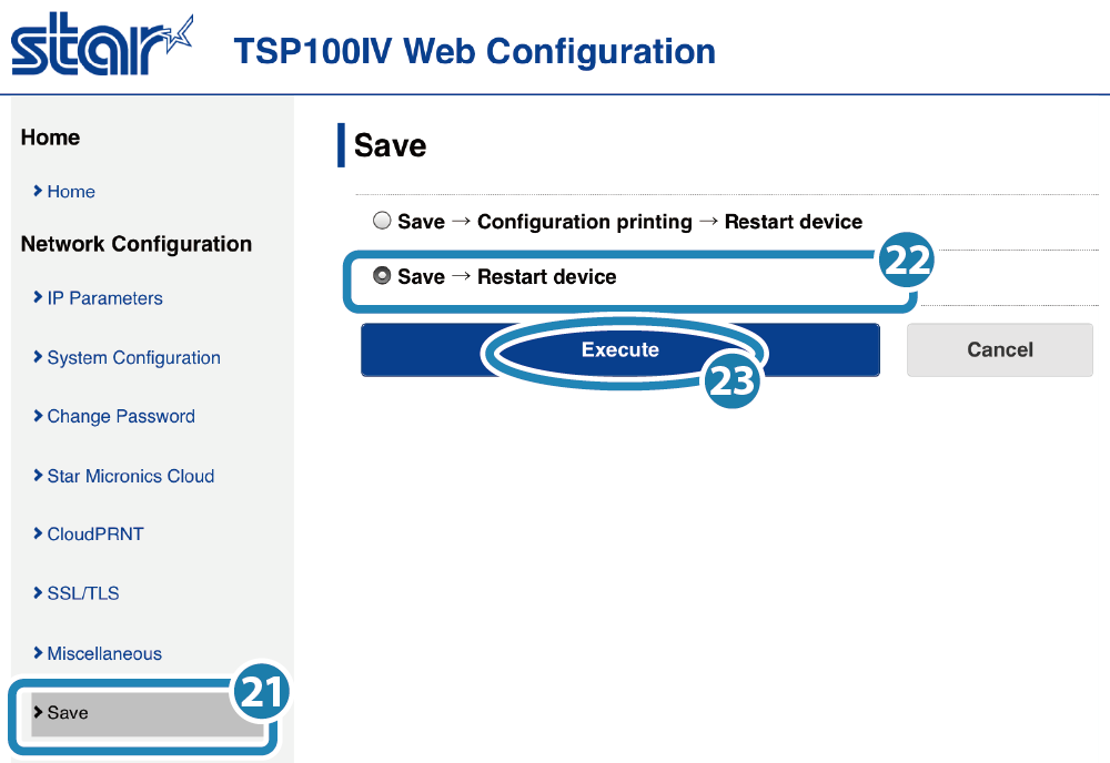 本章節僅說明 mC-Print3 使用 Star CloudPRNT 功能時,印表機端的設定方法。