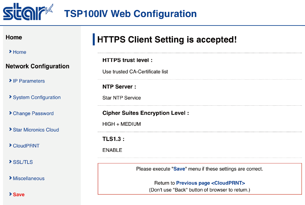 4. 如果 CloudPRNT 伺服器使用HTTPS,請檢查安全設置