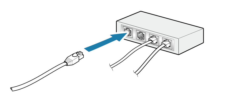 - 將網路訊號線一端連接到集線器(hub )/路由器(router )