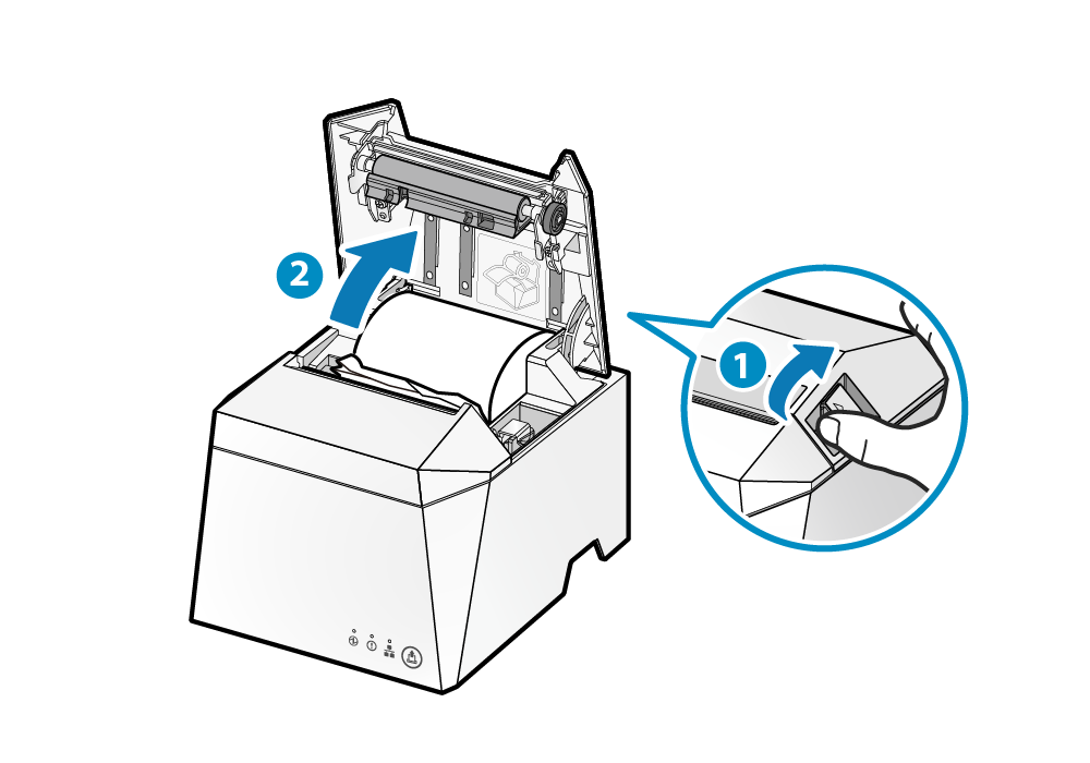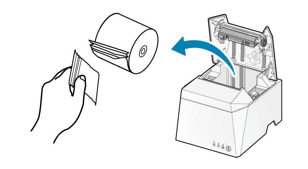 - 根據紙捲安裝說明步驟,重新安裝紙捲。 紙捲安裝.