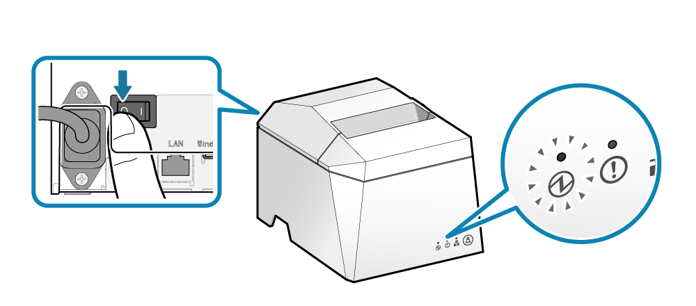 - 按下印表機後面的電源開關。
